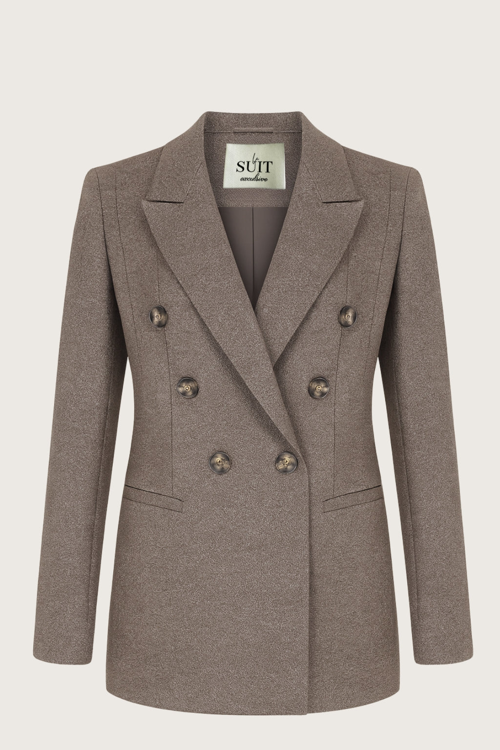 Denne mocha dobbeltradet blazer er skabt til den moderne kvinde, der ønsker at kombinere tidløs...